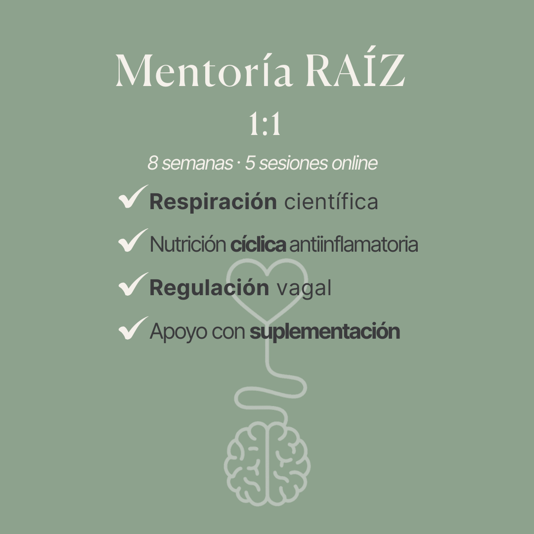 RAÍZ es el puente entre intuición y método. Ordenas tu energía con prácticas de 10 min/día: respiración, regulación vagal y nutrición amable que se sienten de verdad.